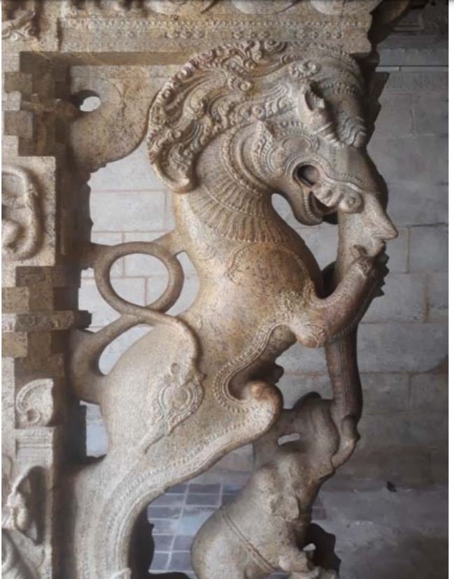 इस मंदिर की दीवारों और खम्बों पर बहुत घनी और जटिल शिल्पकारी देखने को मिलती है जिसमे से के तो अद्भुत है जिसमे