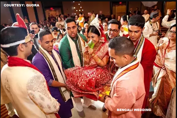 तो बंगाली कल्चर में बड़े ही दिलचस्प तरीके से फेरों की रीत को पूरा किया जाता है,जहाँ दुल्हन को नीची लकड़ी की पटली(पीढ़ी) पर बिठा के उसके भाई उसे मंडप में लाते हैं और दुल्हन ने अपने चेहरे को पान के दो पत्तों से छुपा रखा होता है और ऐसे ही भाई उसे सात फेरे पूरे कराते हैं जिसके बाद ही वह पान के पत्ते हटाती है।