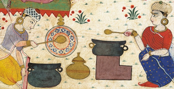 जिसे हर जगह के लोग अपने अनुसार अलग अलग रूप रंग के साथ पकाते हैं । बिरयानी मूलतः भारतीय व्यंजन नहीं है लेकिन ये भारत मे कब और कैसे आयी इसे लेकर कई धारणाएं हैं जिसमे से एक धारणा यह है की तुर्क मुग़ल शासक तैमूर सन 1398 मे जब भारत आये तो वो अपने साथ बिरयानी की रेसेपी लेकर आये जो की उनके सैनिकों के भोजन के रूप मे तैयार की गयी थी जिसमे मिट्टी के घड़ों मे चावल, मसाले और मीट को भर कर आग के गड्ढे मे दबाया जाता था और पक जाने के बाद सैनिकों को परोसा जाता था।