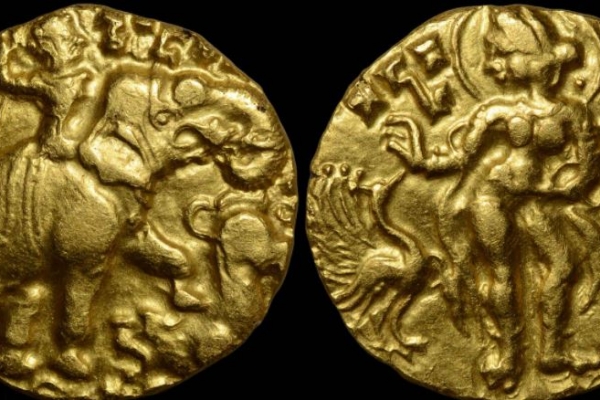 सम्राट कुमारगुप्त, गुप्ता राजवंश के राजा चन्द्रगुप्त-ll के पुत्र थे जिनका राजकाल (415 - 455 ) तक रहा । उन्होंने अपने राज काल में कई प्रकार के सिक्के शुरू किये जिनमे से एक थे -Elephant-rider-lion-slayer type gold coins (हाथी सवार शेर कातिल प्रकार सोने के सिक्के) -जो की हाथी सवारऔर शेर के कातिल प्रकार वाले सिक्कों का मेल थे। इन सिक्कों पर राजा क्षत-विक्षत हाथी पर विराजमान दिखाई देते हैं और आक्रमण की मुद्रा में अपने दाहिने हाथ में खंजर लिए हैं, और उनके पीछे एक बौना छत्र वाहक है। सिक्कों पर देखा जा सकता है की शेर हाथी के पैर को काटने की कोशिश कर रहा है और हाथी उसे रौंदने की कोशिश कर रहा है। चित्र की बाहरी हिस्से पर गोलाई में लिखा है -" क्षतारिपु कुमारगुप्तोः था राजत्रता जयति रिपुनाः"। सिक्कों के विपरीत भाग में प्रभावशाली मुद्रा में लक्ष्मी जी खड़ी हैं,जिनके पास एक मोर है जैसे वो मोर को कुछ खिला रही हों ,और उनके दुसरे हाथ में एक डंठल वाला कमल है। सिक्कों की इस तरफ लिखा है- "सिंहनिहंतः महेंद्रगजः".यह बहुत दुर्लभ प्रकार के गुप्त कालीन शाही टकसाल में बने ठोस सोने के सिक्के हैं।