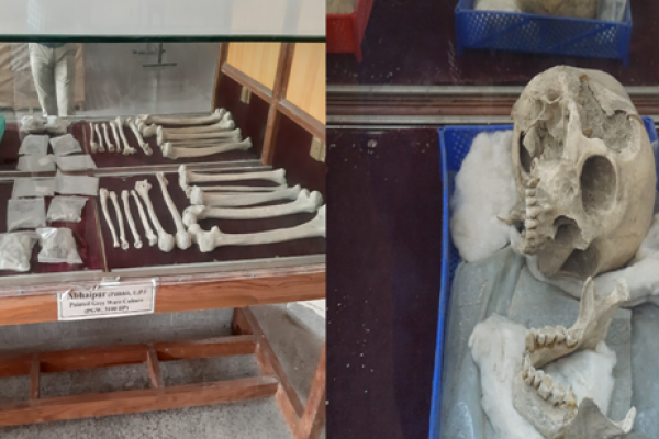 दोस्तों इससे पहले वाले पोस्ट मे हमने आपको मृदभाण्ड संस्कृति के लोगों के द्वारा बनाये गए मिट्टी के घड़े जो पीलीभीत के अभयपुर से प्राप्त हुए थे उन्हें दिखाया था और आज के पोस्ट मे हम आपको उसी संस्कृति के लोगों के अवशेष दिखा रहे हैं जिन्हे उसी जगह से ढूँढा गया है । अब आप सोचेंगे की इसमें क्या खास है तो दोस्तों गौर से देखने मे पता चलेगा की ये जो हड्डियाँ है वो आज के युग के लोगो के ढांचे से काफी बड़ी है जैसे की स्कल (खोपड़ी ) और दांत, आज के युग के लोगों से बहुत बड़ी है इससे पता चलता है की उस समय के लोग काफी लम्बे और बड़े होते थे।