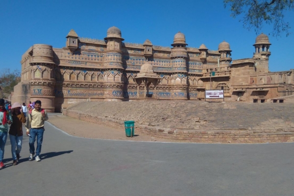 .इस  किले  पर विभिन्न शासकों का नियन्त्रण रहा .लाल बलुए पत्थर से बना यह किला शहर की हर दिशा से दिखाई देता है. एक ऊंचे पठार पर बने इस किले तक पहुंचने के लिये दो रास्ते हैं, इस किले के भीतरी हिस्सों में मध्यकालीन स्थापत्य के अद्भुत नमूने स्थित हैं, 15  वि शताब्दी में निर्मित गूजरी महल उनमें से एक है जो राजा मानसिंह और गूजरी रानी मृगनयनी के गहन प्रेम का प्रतीक है.